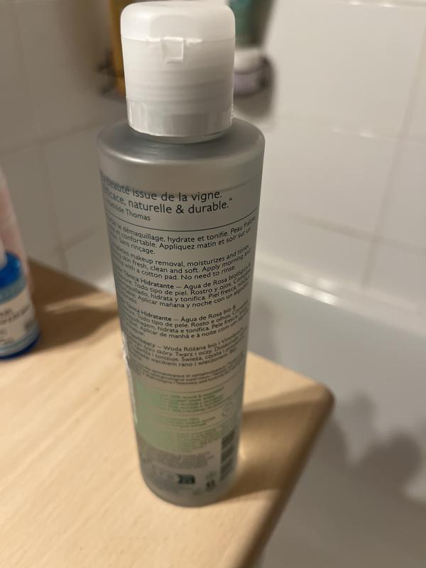 Je l'utilise le matin et soir après la gelée nettoyante, et cette lotion laisse la peau nette et fraîche avant d'appliquer le sérum et ma crème hydratante. A base d'eau de rose et de raisin.