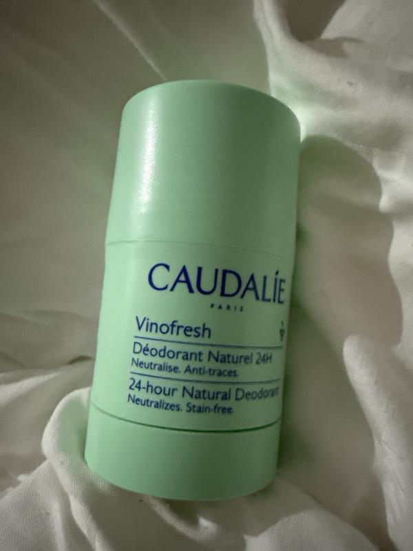 Bonjour, merci beaucoup d’avoir pris le temps de partager votre expérience. Nous comprenons vos réserves concernant l’efficacité, en particulier lors de la transition après l’utilisation d’un anti-transpirant classique. Comme vous l’avez mentionné, un temps d’adaptation peut parfois être nécessaire. Nous sommes toutefois ravis de lire que vous appréciez la texture, le format ainsi que le parfum du produit. N’hésitez pas à poursuivre l’utilisation et à revenir vers nous si vous souhaitez des conseils personnalisés. Bien cordialement, votre équipe Caudalie